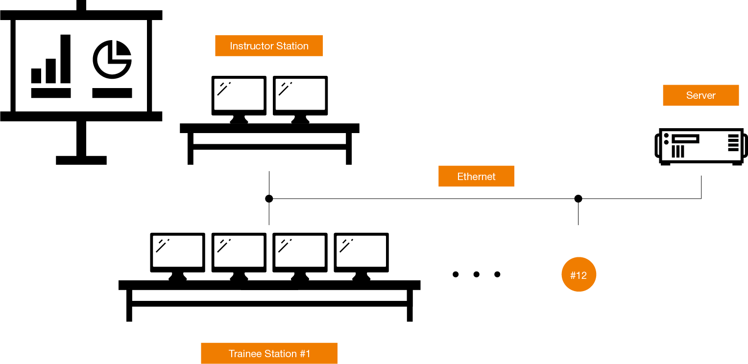6. Instructor workstation: TechSim Instructor Workplace functionality allows exercise preparation, online control and monitoring of student learning process, and exercise briefing and debriefing.
