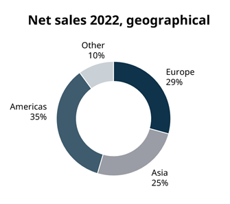 In 2024, 28% of our net sales came from the Americas, 33% from Europe, 26% from Asia, and 13% from other parts of the world.