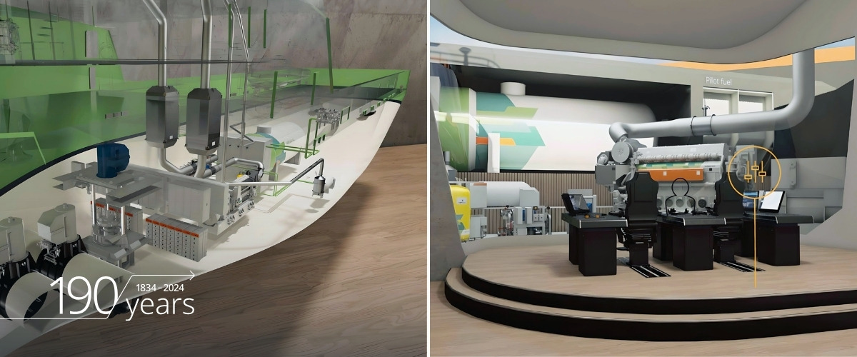 An exciting digital experience awaits you: The Wärtsilä Lounge is a virtual space where you can experience the Wärtsilä 25 Ammonia engine and example applications in real size.
