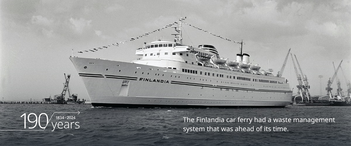 The Finlandia car ferry delivered in 1967 was already equipped with a waste management system. Until then, all waste had simply been tossed overboard, including paperboard and glass. Thanks to the development efforts of Wärtsilä’s young engineers, the Helsinki shipyard won the Shipyard of the Year award for its new waste management system.