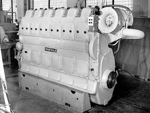 In June 1959, the first Wärtsilä designed diesel engine, the Wärtsilä Vasa 14 (with only three cylinders), was started for the first time. This baby engine was so beloved by the design team that their families would visit the factory premises on Sundays just to see it running.