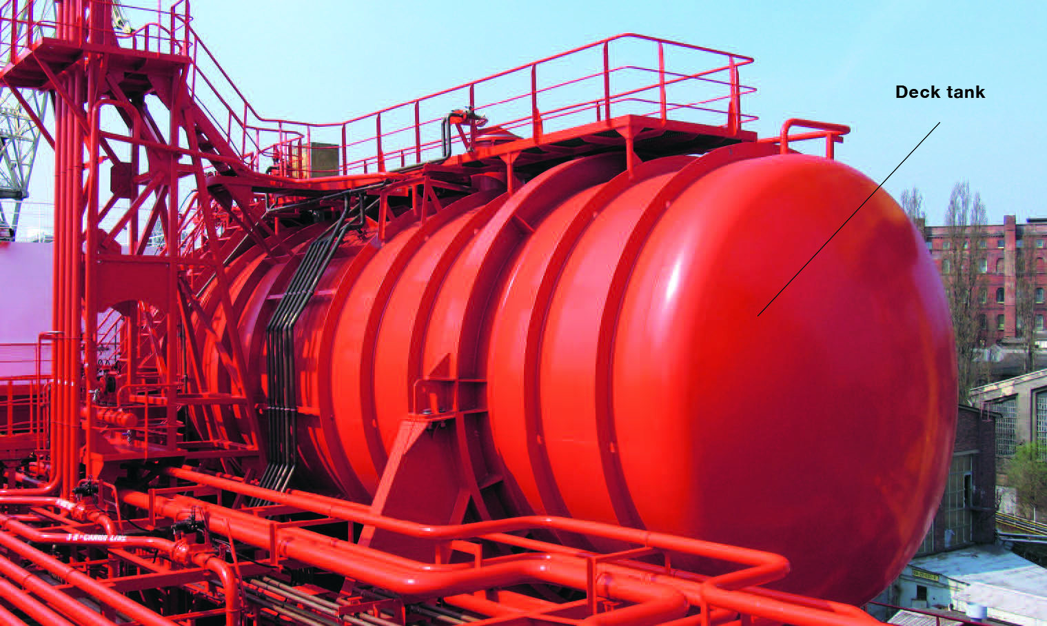 - Deck tank – A cylindrical gravity cargo tank, secured to transverse cradles on the cargo tank deck and used for specialised cargo.