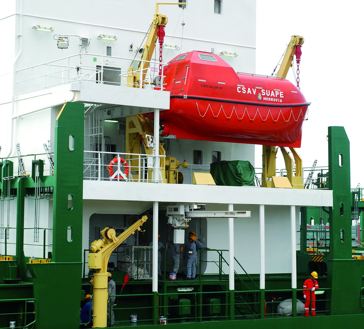 Many of the ships lost have sunk very quickly in heavy weather, and the crew did not have enough time to launch lifeboats from davits. A more effective way of saving lives in the event of a ship sinking is to provide ships with free-fall lifeboats. The benefits are clear: during rapid evacuation in emergencies, the boat slides out from a ramp onboard the ship/installation and hits the water well away from the ship or installation with a high positive forward motion. Passengers are safe and secure in an enclosed cabin, securely strapped to anatomically shaped seats. The lifeboat system is robust and can withstand high winds, powerful waves and extreme weather conditions. See also Survival Crafts and Rescue Boat Arrangement.