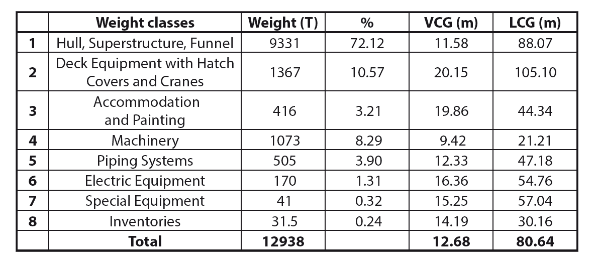 To systematize calculations of lightship mass it is necessary to organize ship components into weight groups.