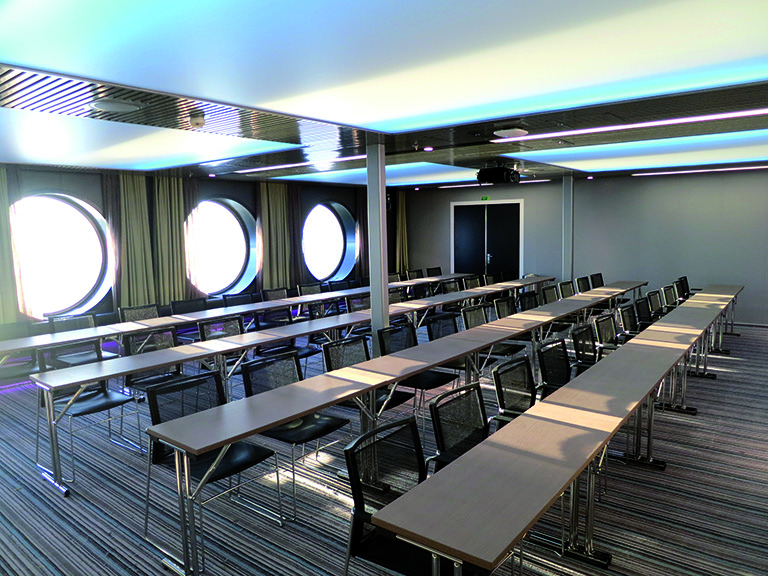 To ensure self-reliance and scheduling in Baltic winter conditions, the hull has been strengthened to Finnish/Swedish 1A Super ice-class criteria. The cruise-standard ferry has been laid out for 2800 passengers, with a total of 880 cabins. The maximum ro-ro freight payload equates to the 1275m lane of main deck loading capacity, complemented by some 550m lane for cars, with provision of a similar capacity on the intervening hoistable deck level.