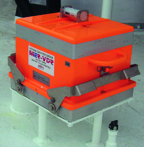 A maritime “black box”. VDR is usually two-part system consisting of a data collecting unit, and a protected storage unit that stores the retrieved data. The main component of the system is carried inside the ship and is connected to a deck-mounted protective capsule which houses a fixed high-capacity solid state memory block. The capsule is designed to withstand fire, deepsea pressure, shock and penetration.