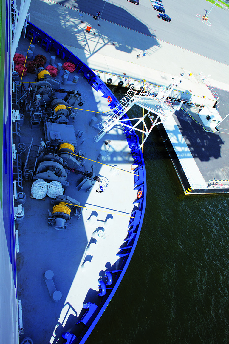 A NACOS platinum bridge-based automation, control and monitoring system has been installed. The automation sector can process approximately 4500 input and output signals controlled by 10 process stations, with operator control possible in diff ering locations such as the Engine Control Room and offi cer cabins in addition to the bridge.