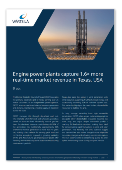 Engine power plants are one of the most flexible power generation technology available today because they can start, stop and ramp up output faster than any other technology. This makes them ideal for capturing value in advanced electricity markets, where speed and flexibility are essential.