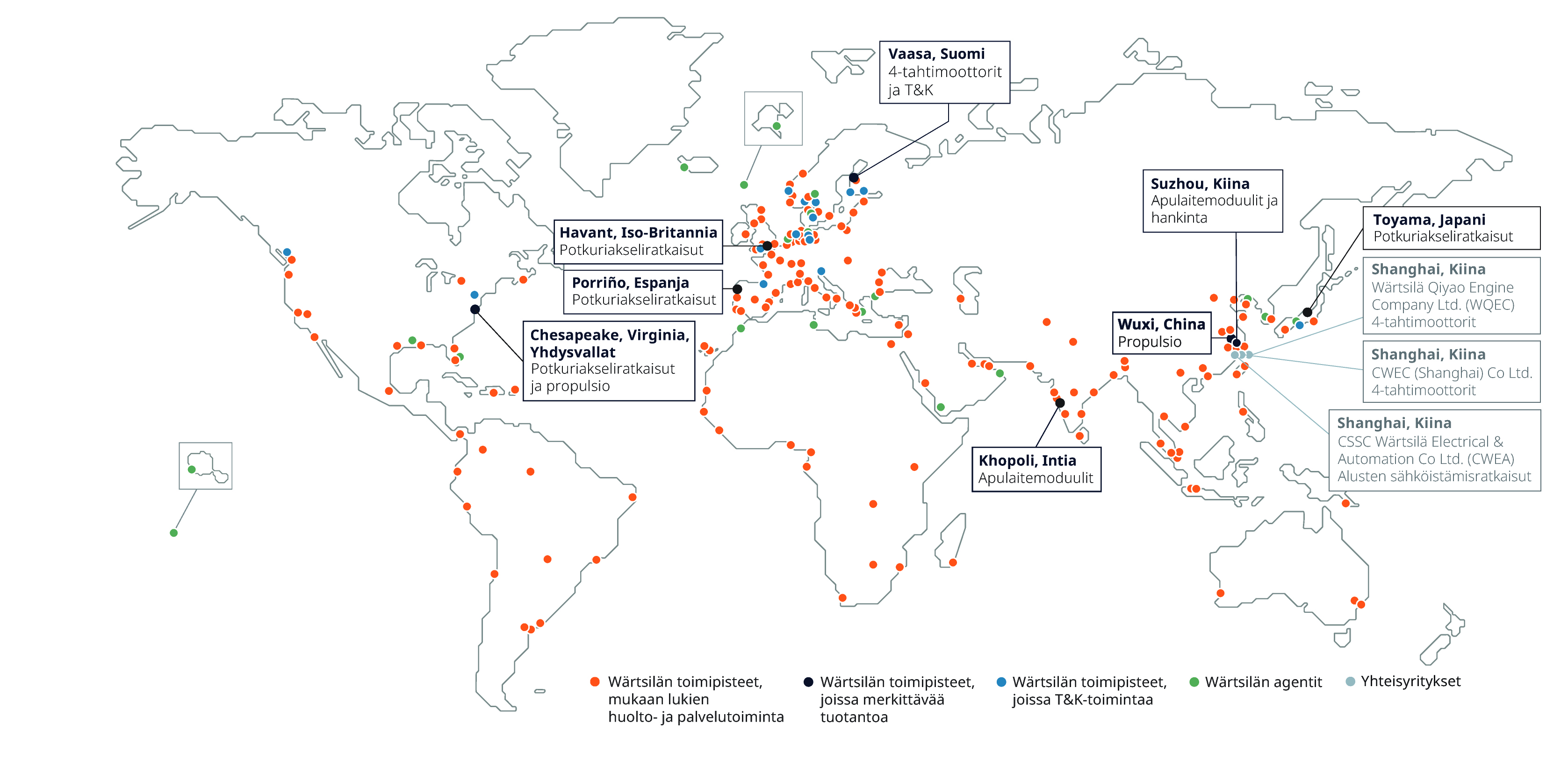 Näe Wärtsilän globaalin toiminnan kartta täältä