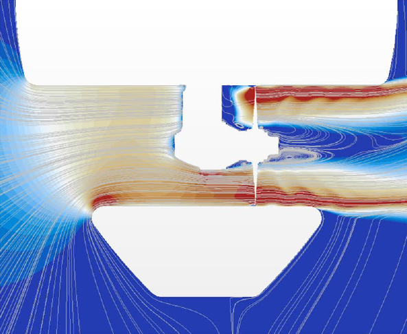 The picture below is the situation without EnergoFlow – note the red, turbulent area.