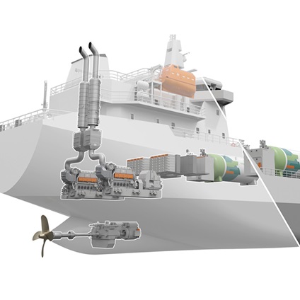 In a mechanical hybrid setup with a controllable pitch propeller, gearbox and shaft generator system, the main engine can be decoupled from the CPP so the vessel can operate solely on battery power when entering and exiting port, eliminating emissions entirely.