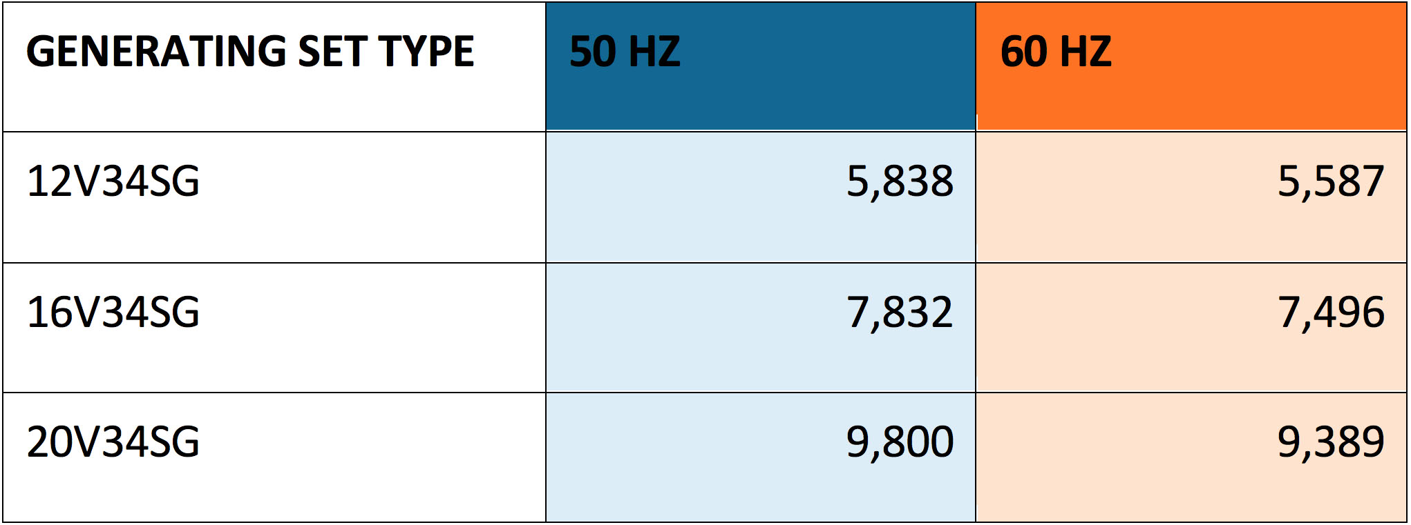 Table 1. Outputs of generating sets available for the Wärtsilä Modular Block