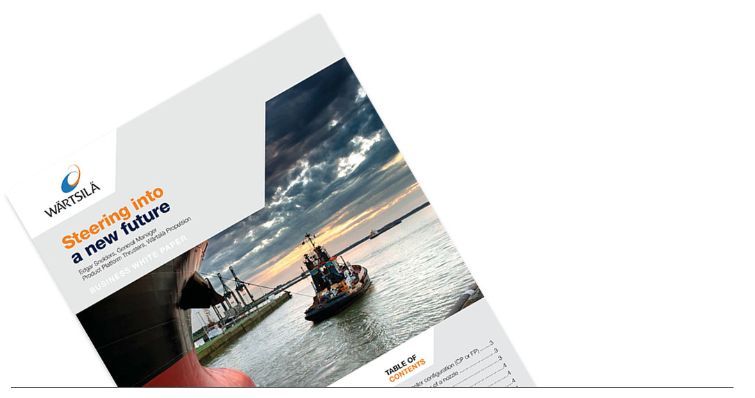 In this white paper, we take a closer look at the different ways in which tugboats propulsion can be improved, and also at Wärtsilä’s next-gen thruster solutions that are designed to improve performance and reduce environmental impact.