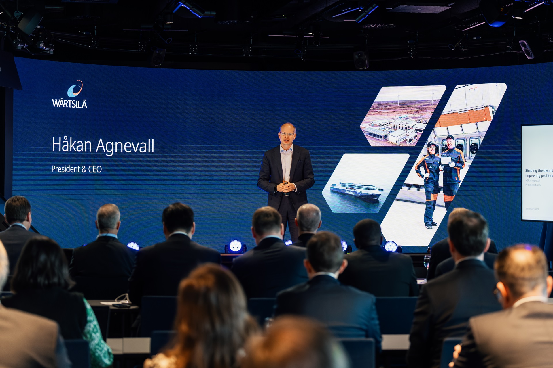 “Shaping the decarbonisation of marine and energy – improving profitability and continuing growth”, stated Wärtsilä’s President and CEO Håkan Agnevall in his welcoming words of the Wärtsilä Capital Markets Day 2023. Håkan started the day by reconfirming the financial targets and highlighting that the focus is on improving profitability and continuing growth; "we have continuous growth in our core markets and segments, and we are the global market leader in major technologies for a sustainable future. Services are already half of our net sales, and the quality of new build margins in the current order book is improving. We are actively managing the business portfolio to support the strategy and financial targets. By moving up the service value ladder, we create value for both our customers and shareholders. One very strong proof point of the customer value that we are creating, s is that we have a 90% agreement renewal rate from the customers."