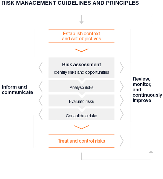 Wärtsilä’s over-arching risk management framework, and the associated practices, adheres to the ISO 31000:2018 standard, and is focused on continuous improvement and verification. The risk framework and guidelines are documented in the Group’s Enterprise Risk Management policy.