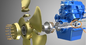 이축선 추진기 배치의 페더링 프로펠러의 추가적인 특징 하나는 운항 도중에 섀프트를 유지보수 및 점검할 수 있다는 점입니다.