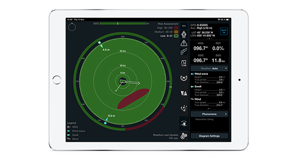The tracking and awareness module show live vessel track, playback/-ahead for incident investigation, safety-related information/notifications, various map overlays (e.g., weather) and geo object information.