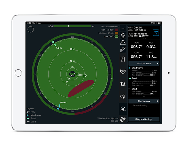 Because the navigational data and the charts collection in BridgeMate are kept updated in real time, it is a reliable back-up in case of a main system blackout. Even offline, it will support route monitoring, docking assistance, and hazard avoidance thanks to its built-in GPS.