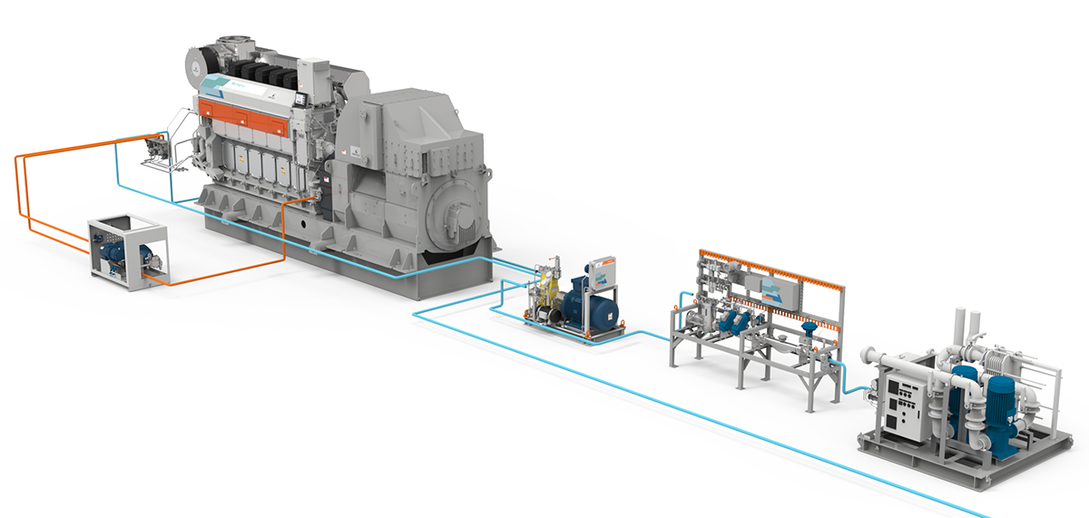Wärtsilä MethanolPac is a complete fuel supply system for methanol-fuelled ships, including a low-pressure part (the bunkering station, tank related equipment, methanol process equipment as well as the control and monitoring system) and a high-pressure part (MFPU - Methanol Fuel Pump Unit - and OPU - sealing and control oil pump unit), depending on the needs of the methanol consumers.