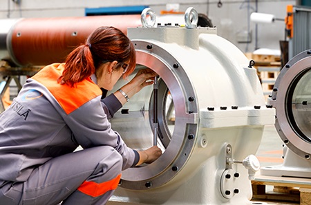 Caption: Wärtsilä’s engineer presents Linesafe bearing, which significantly improvements the performance of intermediate shaft bearing solutions.