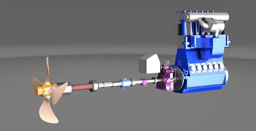 Caption: Propulsion package with low-speed engine, gearbox and controllable pitch propeller