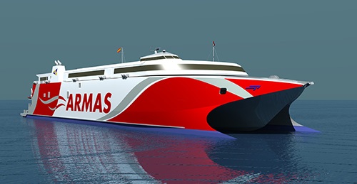 Caption: The new high speed catamaran will be the third delivered to Naviera Armas with Wärtsilä waterjets.