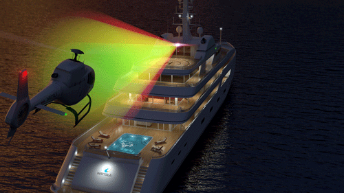 “Mega yachts often feature a helicopter landing area, which inevitably carries an increased risk of accidents, and which require the full attention of the captain and crew. Our novel Helicopter guidance tool is designed to enhance the safety of shipboard helicopter operations, and is an important addition to our technically advanced solutions vessel navigational aids,” says Stephan Kuhn, Vice President, Electrical & Automation, Wärtsilä Marine Solutions.