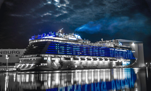 “The Funa Dynamic lighting system that we are supplying to this vessel will create something completely new and stunning. It provides a unique signature and is different to anything done before. This lighting concept will change the way people see a cruise ship arriving or departing the harbours of the world,” says Frank Meyer, Project Manager, Wärtsilä Funa International GmbH.