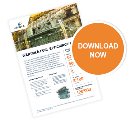 A high efficiency of the main engine is a key factor for the profitable transport of cargo by vessels. An upgrade with the Wärtsilä Fuel efficiency boost enables the fuel costs of two-stroke engines to be reduced considerably while complying with exhaust emission regulations.