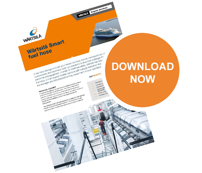 The Wärtsilä Smart fuel hose detects leaks before they cause problems such as costly fuel spills or an engine-room fire. This increases safety for crews and passengers and helps to protect the environment and critical equipment.