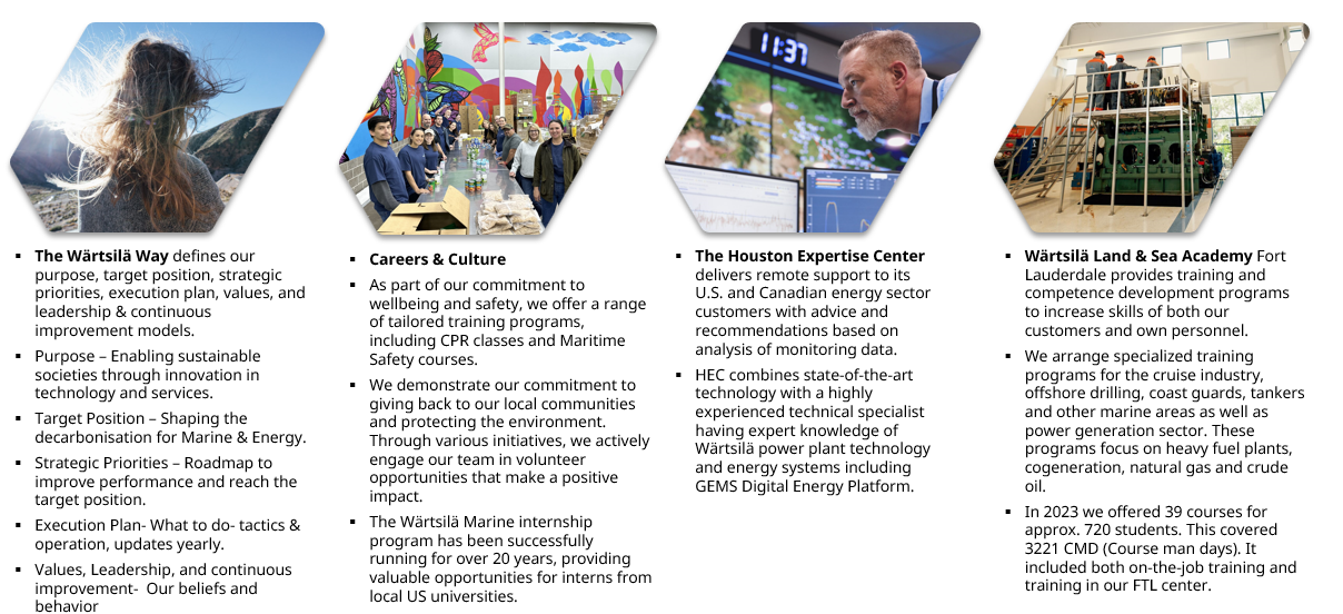 Wärtsilä established its US operations in 1979 through its subsidiary Wärtsilä North America, Inc. (WNA). Wärtsilä employs professionals in 8 regional locations across the US. This also includes LOCK-N-STITCH, Wärtsilä Energy Storage Inc. and Defense Maritime Solutions.
