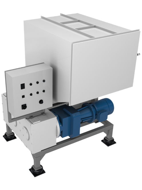 The glass crusher passes this material through shredder blades which reduce the glass to very small particles. This significantly reduces the volume of the material producing a waste that is more manageable to store.